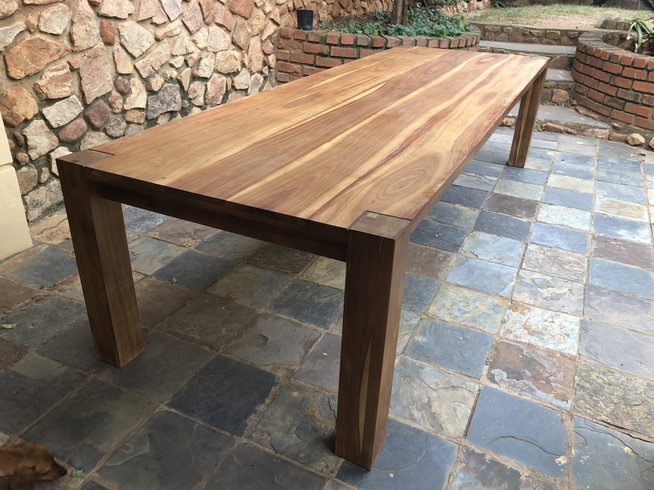 You can chose to have the legs through the table or below the table. You can customize the table sizes, however see standard sizes available. Also we do manufacture the Ebotse range in different wood types, Kiaat, Rhodesian teak, American rustic and prime ash, Rustic and white oak.