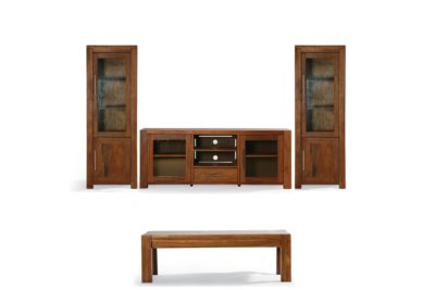 Ebotse complete plasma stand. You can order the units separately or as a set. Different size options available or customize your own set. In the picture – main unit: 1940w x 700h x 520d 2 door and 1 x drawer with movable shelves- side units – 1800h x 600w x 520d – 2 x door with shelves.
