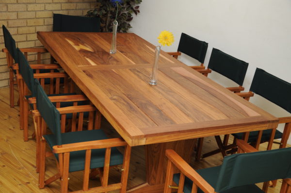 Malumi Dining table available in different wood types. In the picture we used Rhodesian teak, other options: Kiaat, American ash, and white oak.